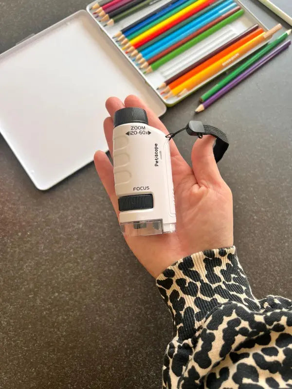 Découvrez Le PetiScope ™, un microscope de poche spécialement conçu pour éveiller la curiosité des enfants et transformer chaque balade en une aventure scientifique.
